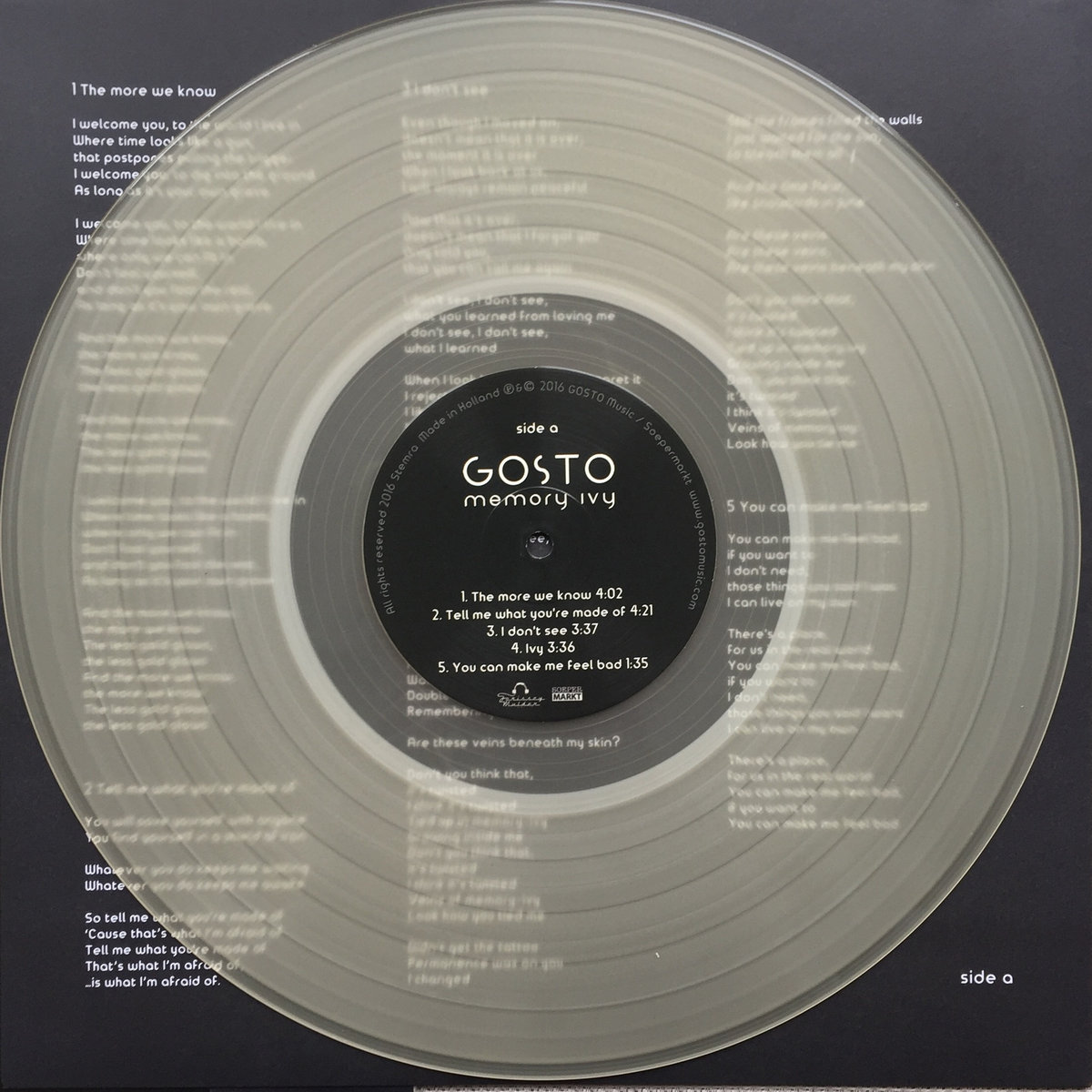 his debut album ‘Memory Ivy’ in October 2016 via PIAS Recordings Holland. After 2 self released Eps, a Spotify streaming hit with single ‘My Bad’ and succesfull tours in Holland & Germany, ‘Memory Ivy’ proved to be the best GOSTO has delivered so far.